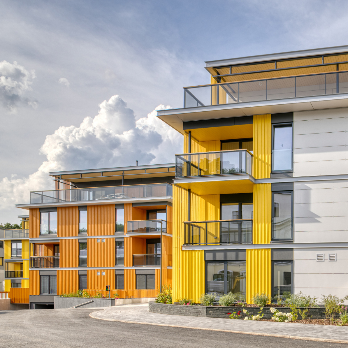 - Enamik kortereid on rõdude või terrassidega, avanedes autovabasse sisehoovi
