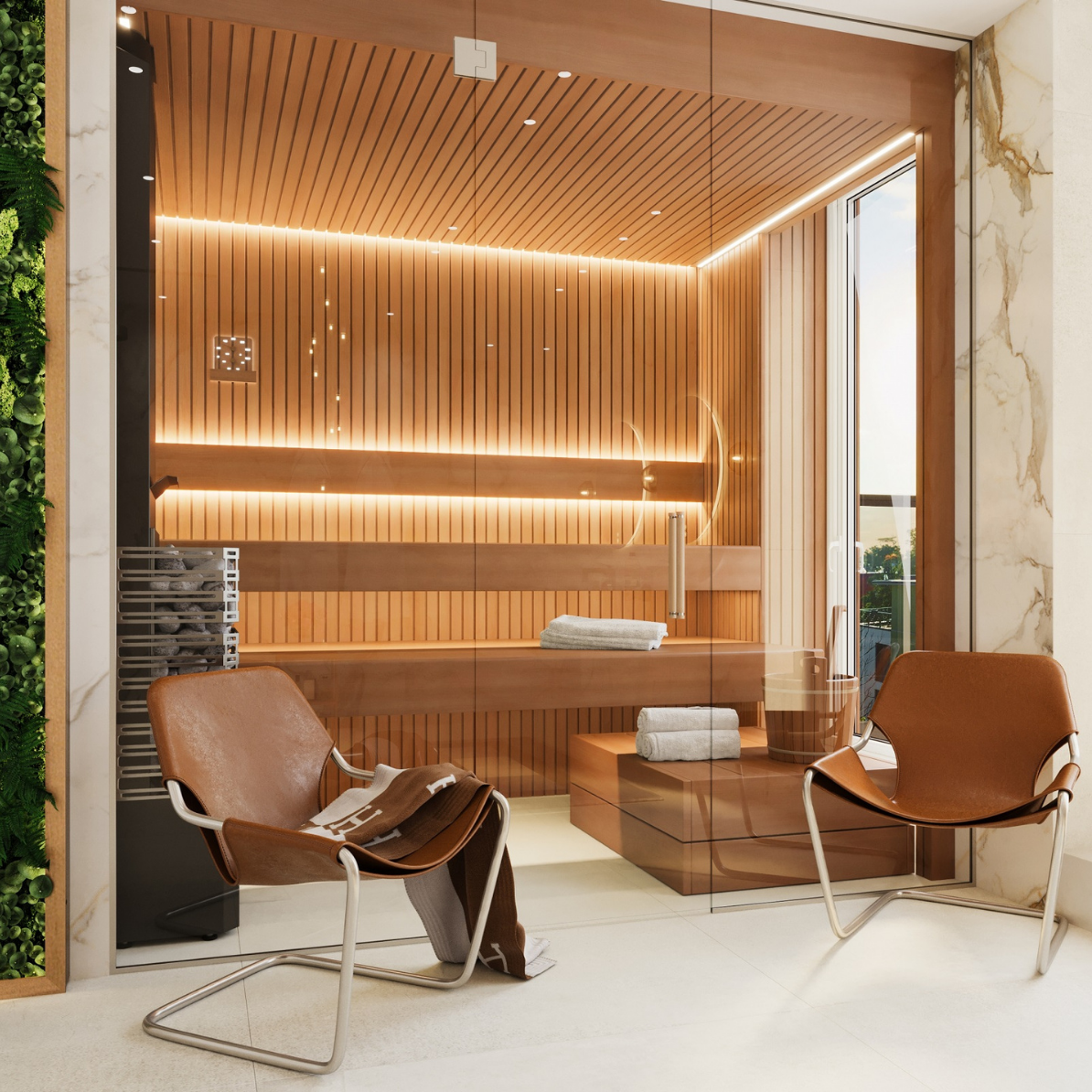 Saunast otse väliterrassile: pärast kuuma sauna saad nautida värsket õhku oma privaatsel väliterrassil.